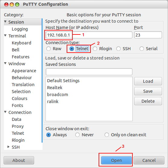 2) В качестве telnet клиента рекомендуем клиент Putty, который можно скачать по следующей ссылке: