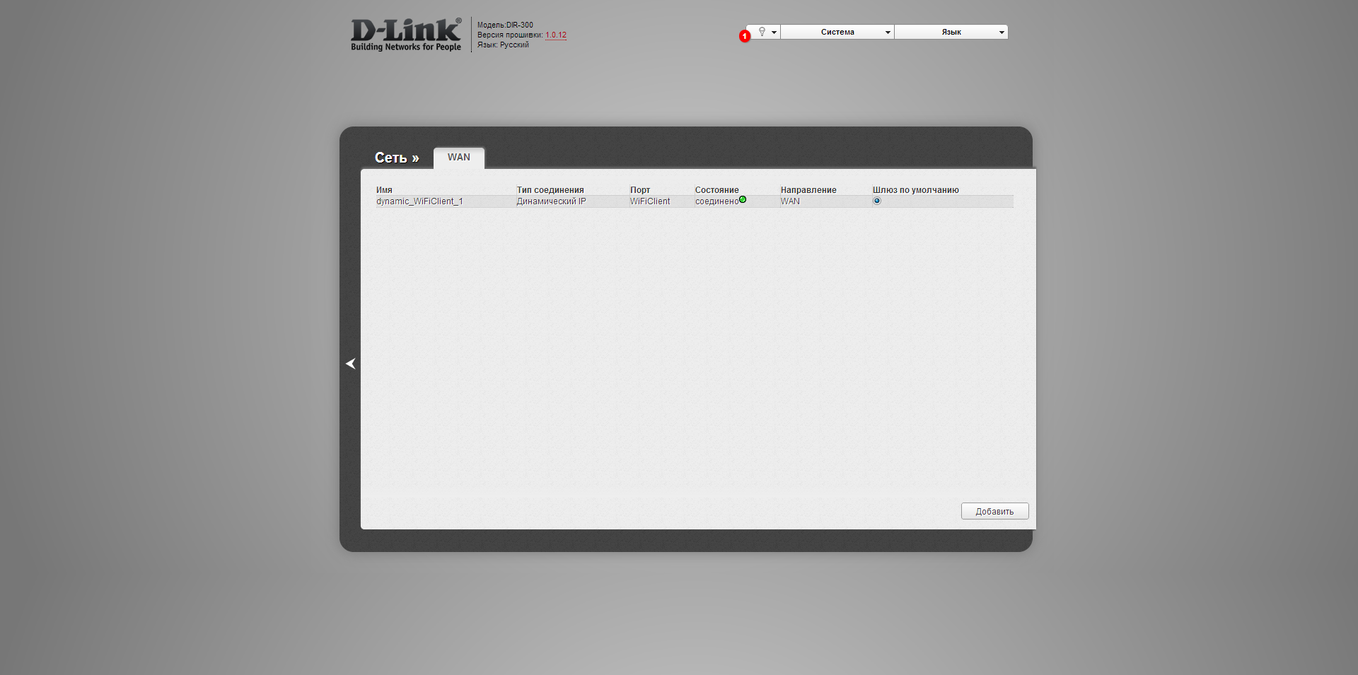 Здравствуйте, я немного затерялся) Да, я обновлял прошивку регулярно, вот только что обновил до версии 1.0.12. со сбросом настроек после прошивки! Пробовал сбрасывать настройки и после настройки роутера, не помогает. Роутер все равно после выдергивания его из сети и последующим включением не создает соединение. При заходе в настройки wan говорит что соедингение разорвана, а при заходе в настройки wi-fi клиент показано что роутер подключен к точке wi-fi. Решает проблему повторное подключение (так сказать принудительное). Настраиваю так: Захожу сразу в настройки wi-fi - основные - скрыть точку доступа, затем клиент - включить режим клиент - подключаюсь к точке, затем wan - удаляю имеющееся там изначально соединение по wan порту - создаю новое - тип Динамический, порт wificlient, далее опять в настройки wi-fi клиент, опять подключаюсь т.к он как и при перезагрузке не устанавливает соединение автоматически и все.