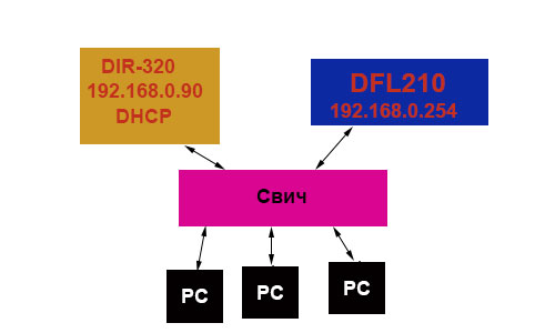 Иногда нужно переключать пользователей на другой шлюз в сети, а именно DFL-210.