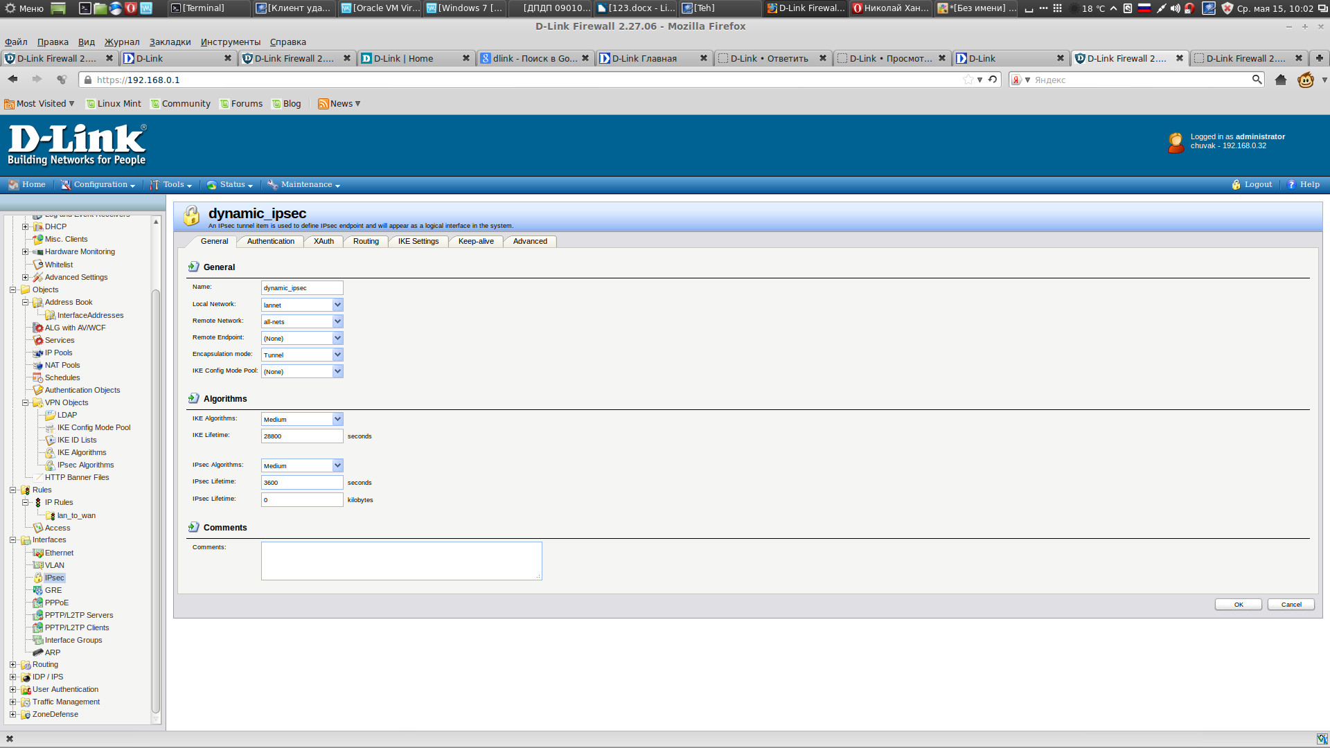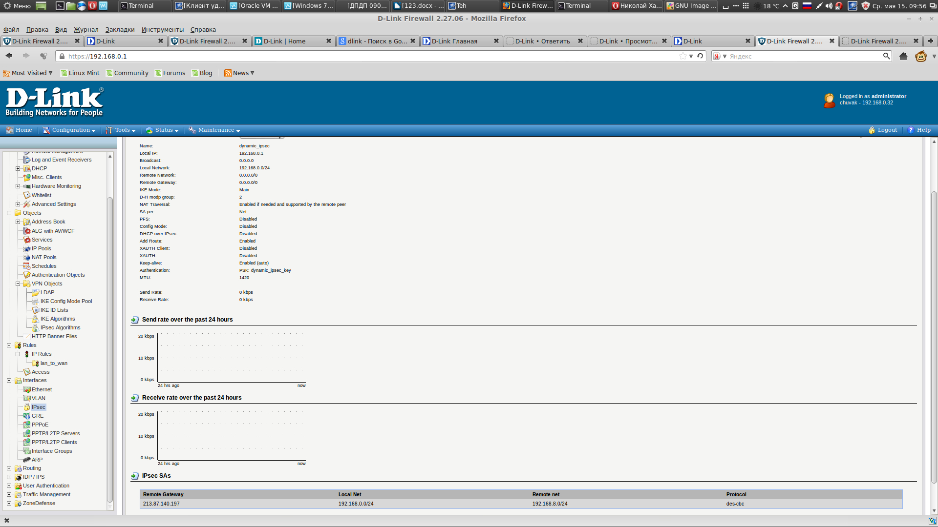 http://www.dlink.ru/ru/faq/92/927.htmlSA есть. Двоения нету. Маршруты не прописывал никакие. Но вроде в настройках ipsec есть галочка Dynamically add route to the remote network when a tunnel is established.