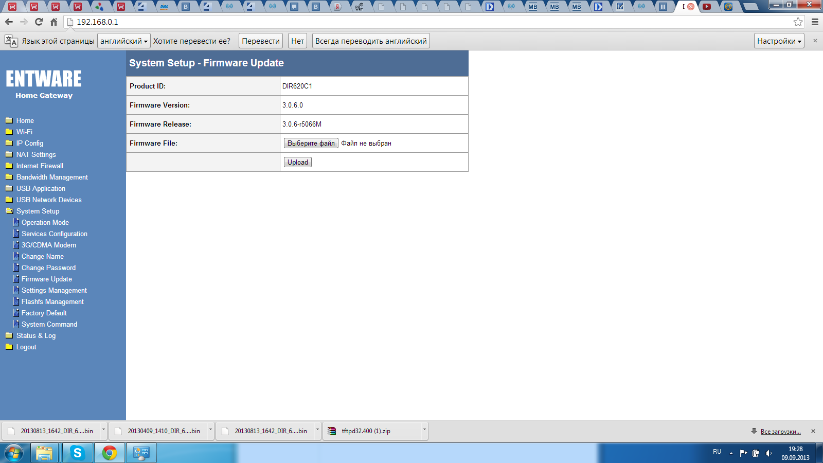 ftp://ftp.dlink.ru/pub/Router/DIR-620/Firmware/RevC/До входа в аварийный режим нужно задать статический адрес в настройках сетевой карте на компьютере IP: 192.168.0.2 маска: 255.255.255.0