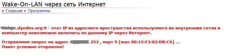 viewtopic.php?f=3&t=62071Собственно, в локальной сети WOL работает. При попытке включить из интернета - тишина. [url]Wakeonlan.ru[/url]Выдаёт такую картинку