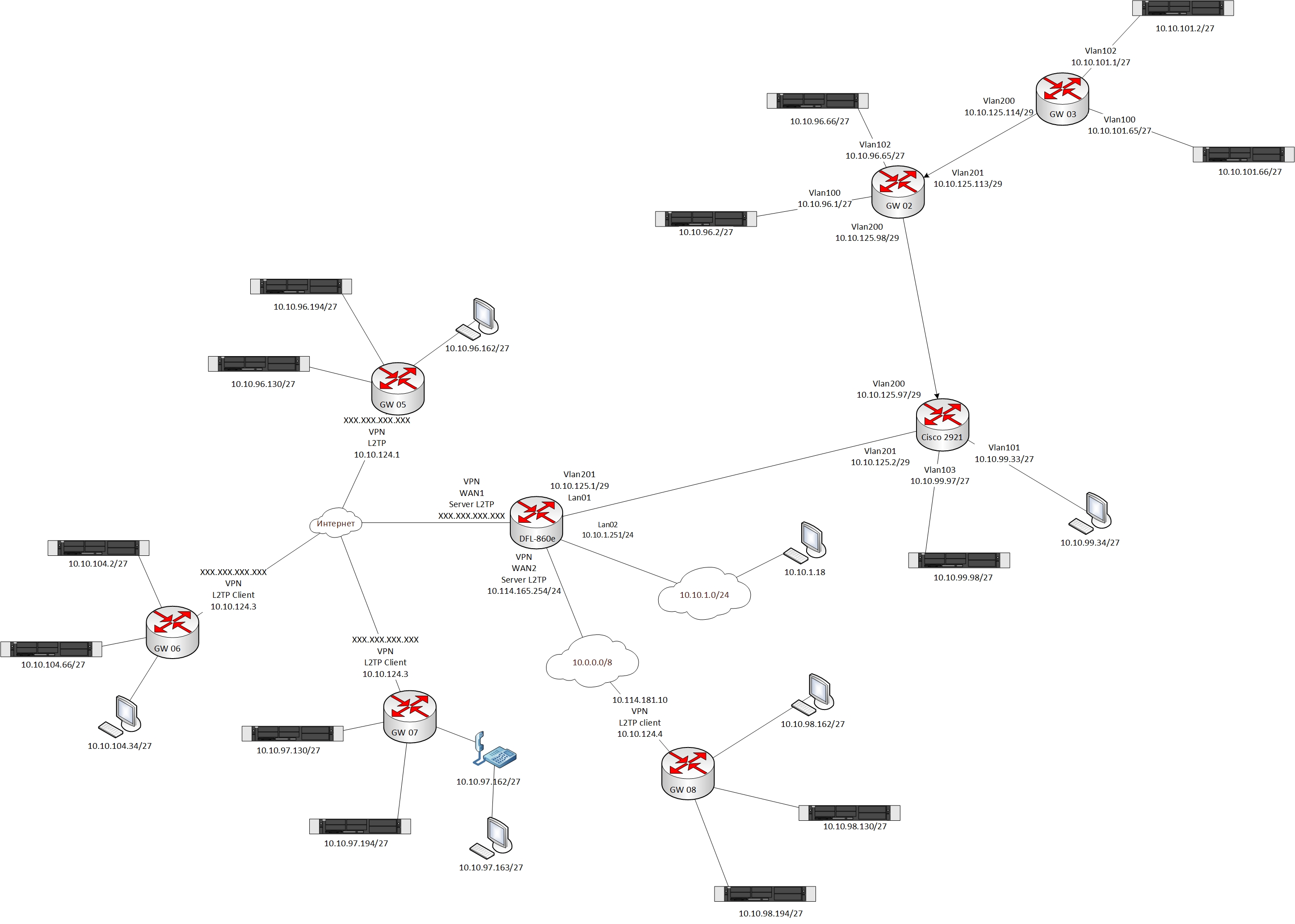 6. Всё это дело собрано в кучу на VPN'ах и VLAN'ах.