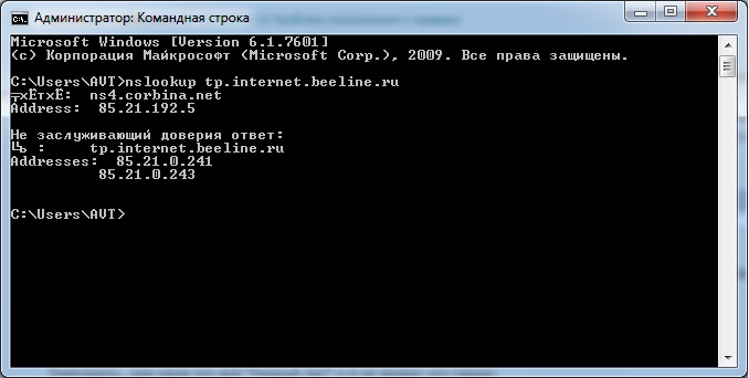 и два адреса "Не заслуживающий доверия ответ:" для tp.internet.beeline.ru (если прогнать команду через маршрутизатор - адреса теже)