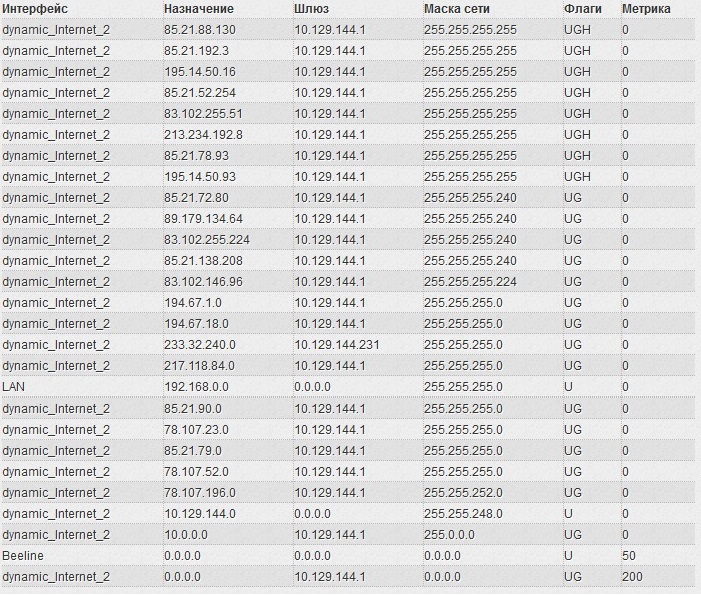Вот таблица маршрутизации. Ради интереса сравнил: "когда TF2 не коннектится" и "когда TF2 коннектится"(после перезапуска маршрутизатора ранее описанным способом) - таблицы одинаковы