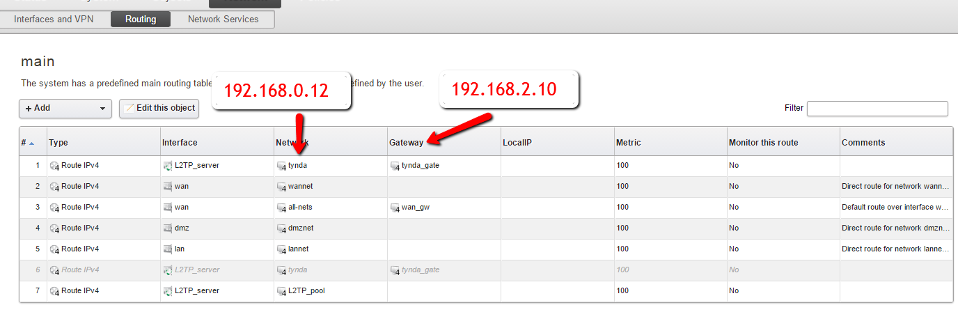 На DFL поднят L2TP сервер, к нему через интернет подключен клиент (Win2003 server), который получил IP адрес 192.168.2.10