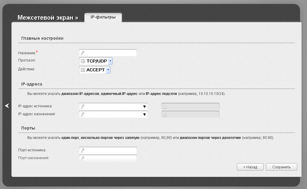 Скажите, куда выставлять диапазон IP-адресов, в "IP-адрес источника" или "IP-адрес назначения"?