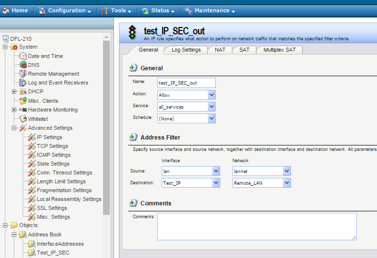 Не получается настроить VPN между DSR-250N и DFL-210.