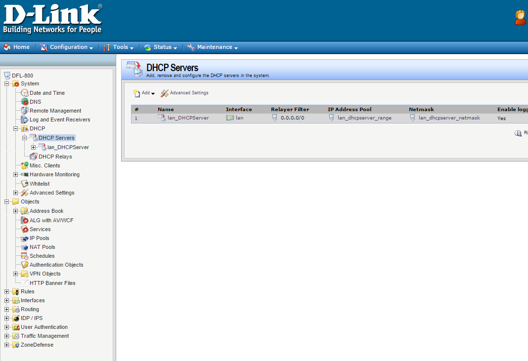 Заголовок сообщения: DHCP сервер на DFL-800