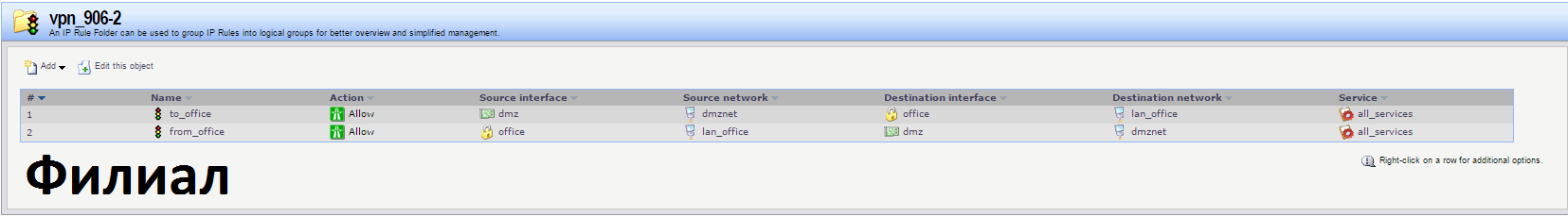 на удаленном тоже самое , только указываете эту же группу - предворительно создав ее , что там она LocalNet .