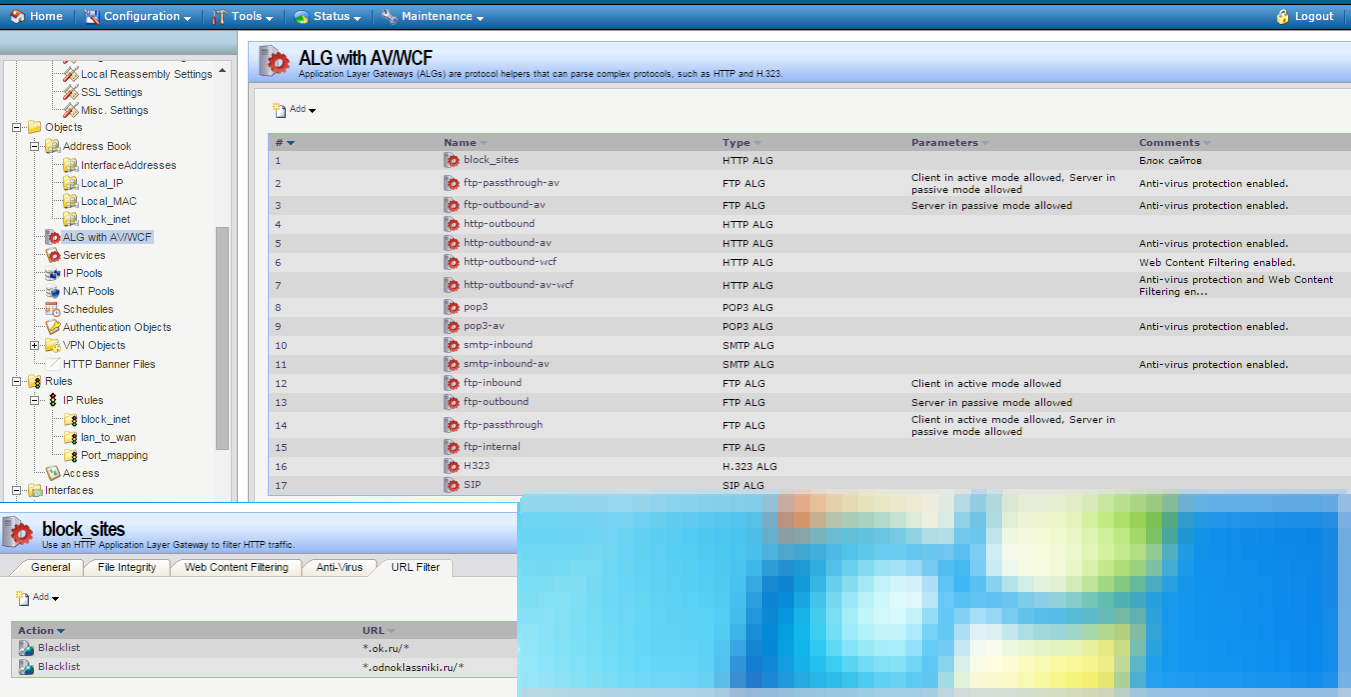 1. создал новый HTTP ALG и добавил в черный список сайт одноклассников