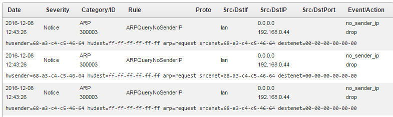 Log Message: ARP query sender IP is 0.0.0.0. Dropping