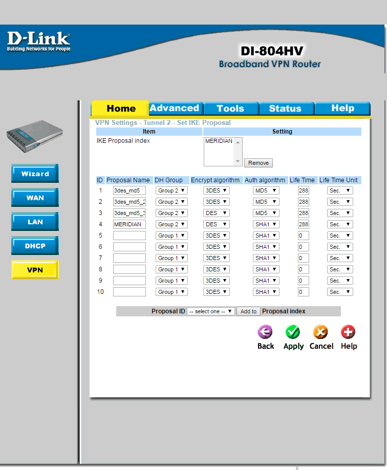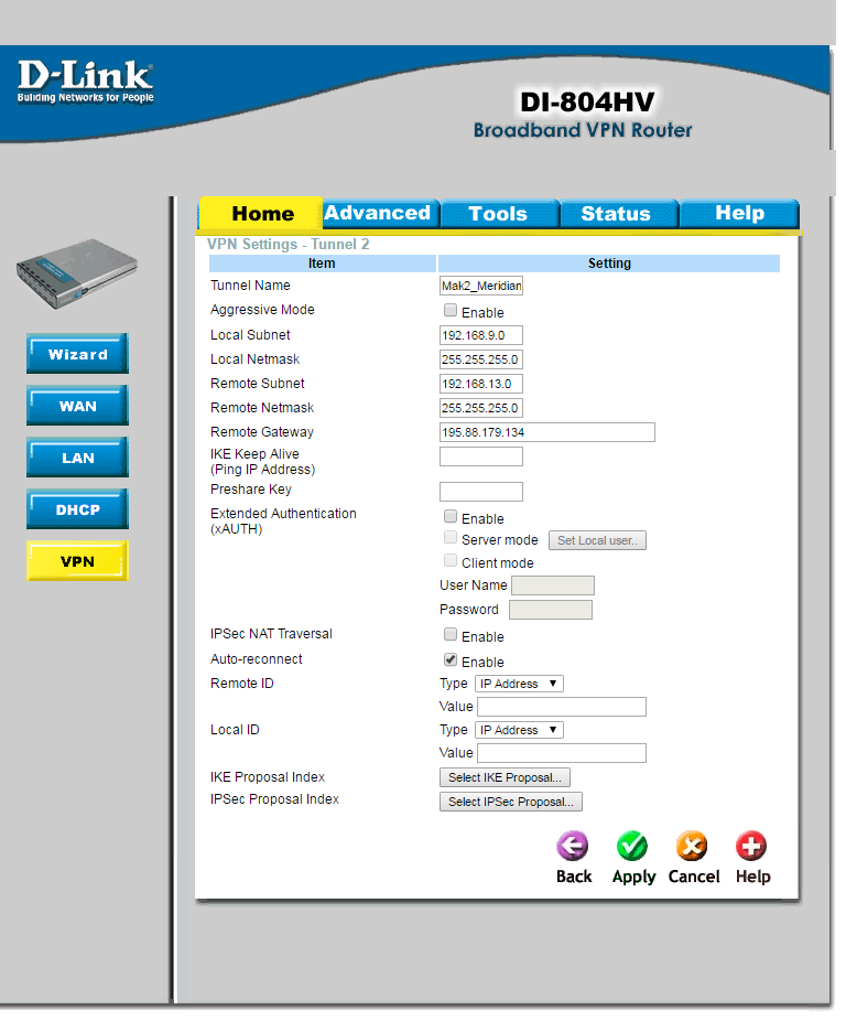 Здравствуйте. Никак не получается поднять тунель между устройствами Dir-140l и DI-804HV. Три тунеля между одинаковыми моделями все работает отлично, но между разными не получается. Прикладываю настройки DI-804HV и вот его лог: