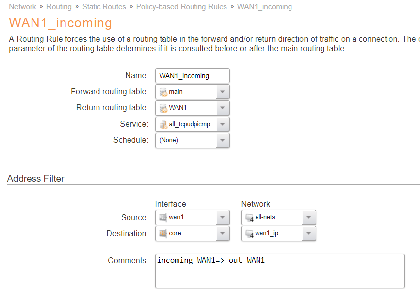 WAN1: interface WAN1, Network All-nets, gateway Wan1_gw, metric 80