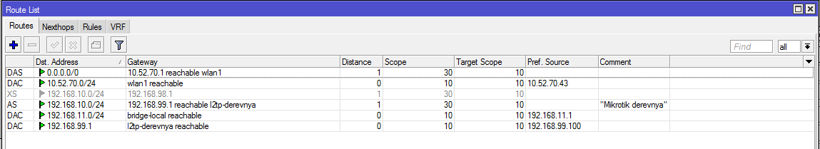 На Микротике уже есть маршрут в мою сеть за DFL (192.168.10.0/24). Или надо для каждого клиента в отдельности? А какие правила надо добавить на DFL?