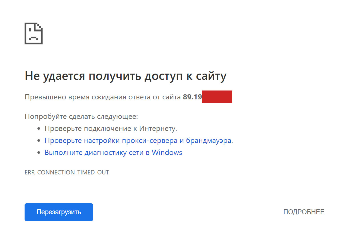 При попытке обращения к сайту из локальной сети и(или) из интернета в браузере появляется вот такое сообщение: