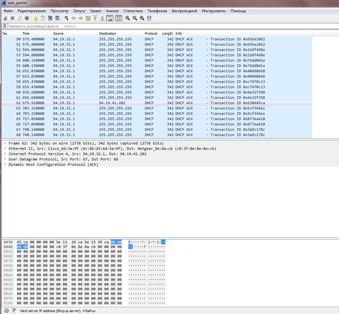 Dec 15 12:24:08 prio=2 id=00700003 rev=1 event=lease_acquired iface=wan2 ip=94.188.43.ХХХ netmask=255.255.255.0 bcast=94.188.43.255 gw=94.188.43.1 recvif=wan2 srcip=94.188.11.1 destip=255.255.255.255 ipproto=UDP ipdatalen=308 srcport=67 destport=68 udptotlen=308