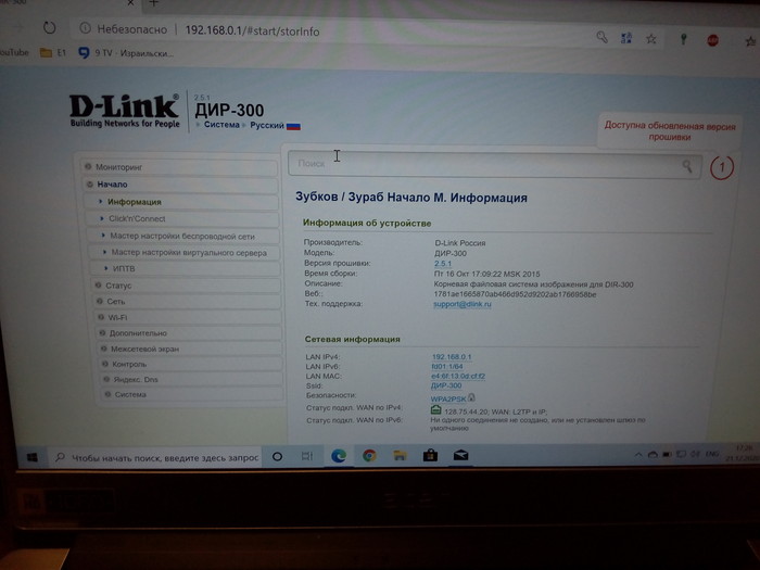 Несколько лет назад был приобретён роутер D-Link DIR-300S