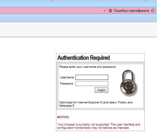 Дополню - через IE удалось добраться до окна ввода пароля, но дальше продвинуться не получается. Там же выдается предупреждение об ошибке сертификата.