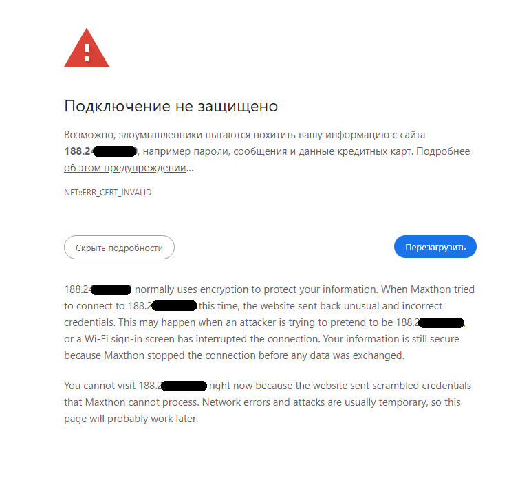 Как я понимаю, проблема с сертификатом SSL. Зайти можно только через IE, проигнорировав все сообщения и предупреждения. Все остальные браузеры - просто не пускают.