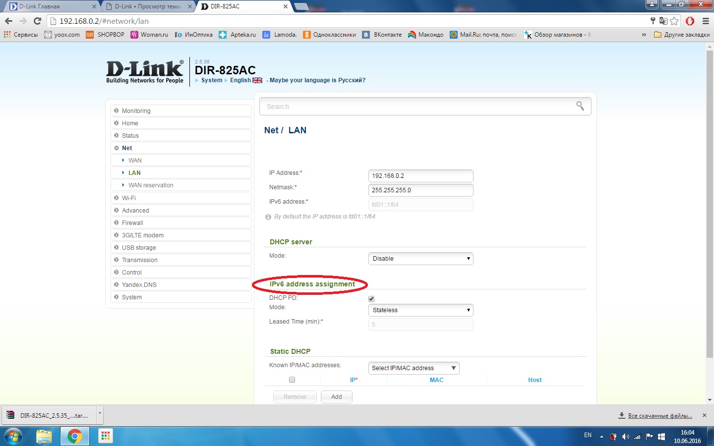 В кратце, после того, как сбросили роутер и настраиваете его заново, то для того, чтобы при отключении DHCP можно было зайти на роутер - отключайте DHCP в последнюю очередь, например: сбросили настройки роутера, настроили WiFi сеть, МАС-фильтр и остальные параметры, то переходите в раздел Сеть / LAN и отключаете DHCP сервер и в разделе IPv6(скрин которого Вы прислали чуть выше) ставите режим запретить и меняете адрес роутера на нужный, в Вашем случае было 192,168,0,100, далее нажимаете Применить, далее Сохранить (слева вверху рядом с кнопкой Язык кнопка Система / Сохранить) и нажимаете на банер, который предлагает Вам совершить перезагрузку роутера. Собственно, он перезагрузится и Вы можете подключить его в сеть. Далее компьютер можете подключить по LAN или WiFi к DIR-825/АС, либо к DGS-1005D и Вы спокойно сможете зайти в настройки DIR-825/AC, т.к., последний будет находиться в одной сети с ноутбуком.