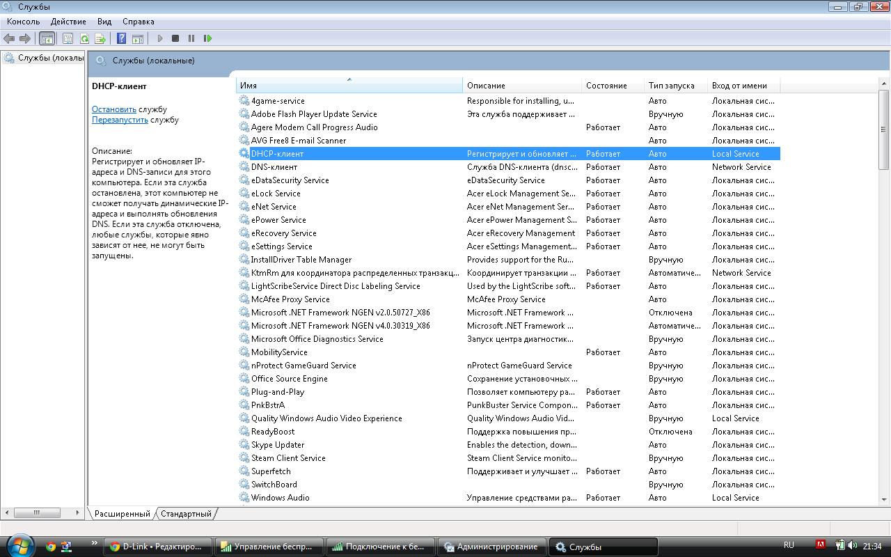 А при чем тут служба? Интерфейс wi-fi как настроен?