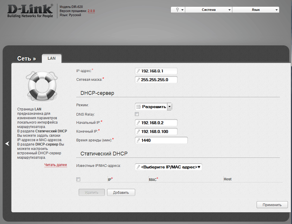 Комментарий к файлу: Вкладка Сеть - LAN