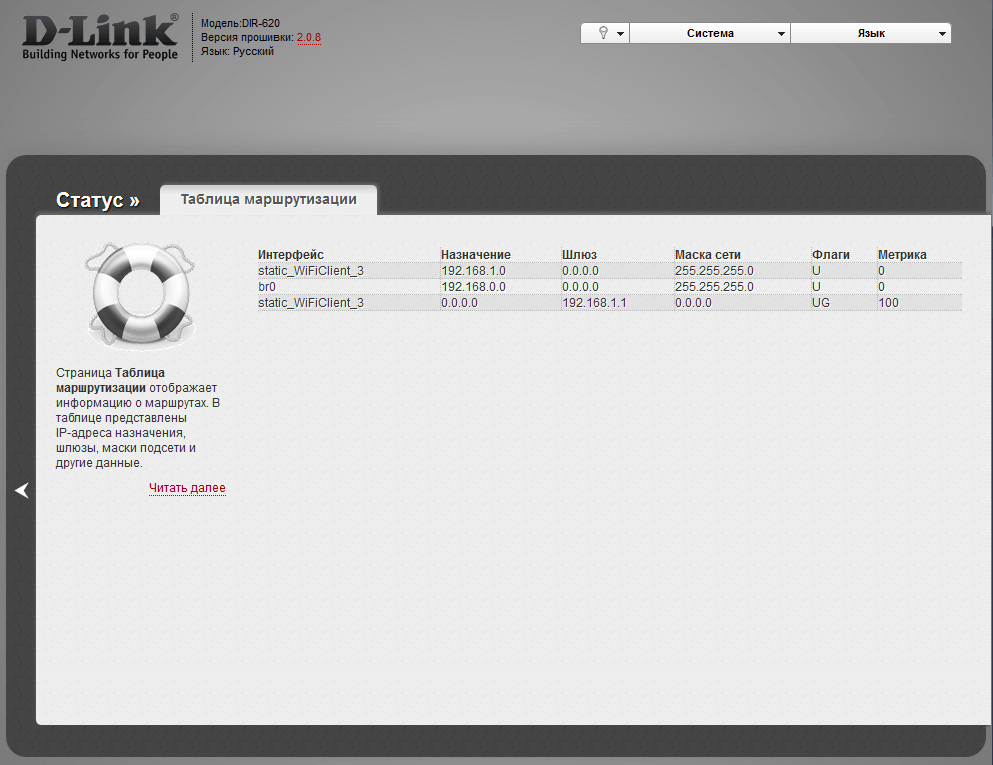 Комментарий к файлу: Вкладка Статус - Таблица маршрутизации