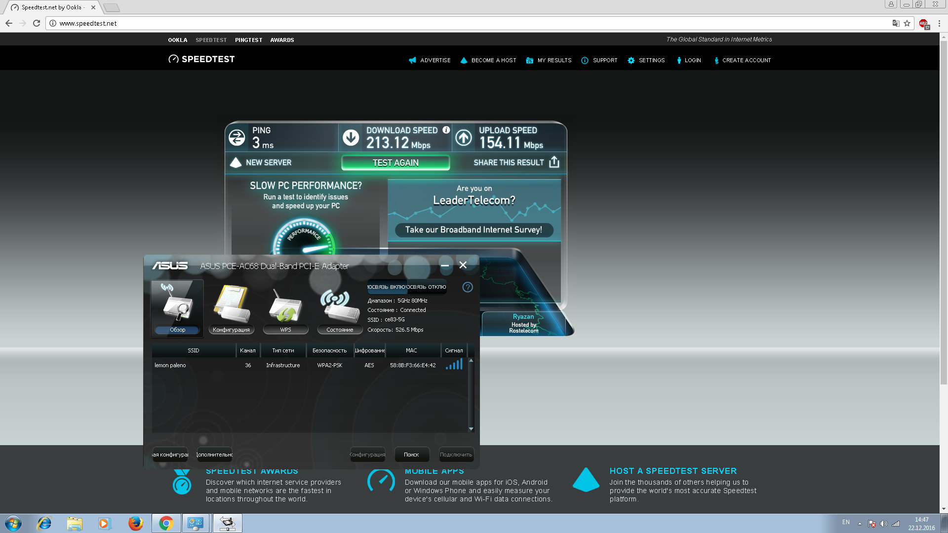 Результаты наших тестов можно увидеть ниже. На роутере настроено PPPoE соединение, переименованы SSID, все остальное по дефолту.