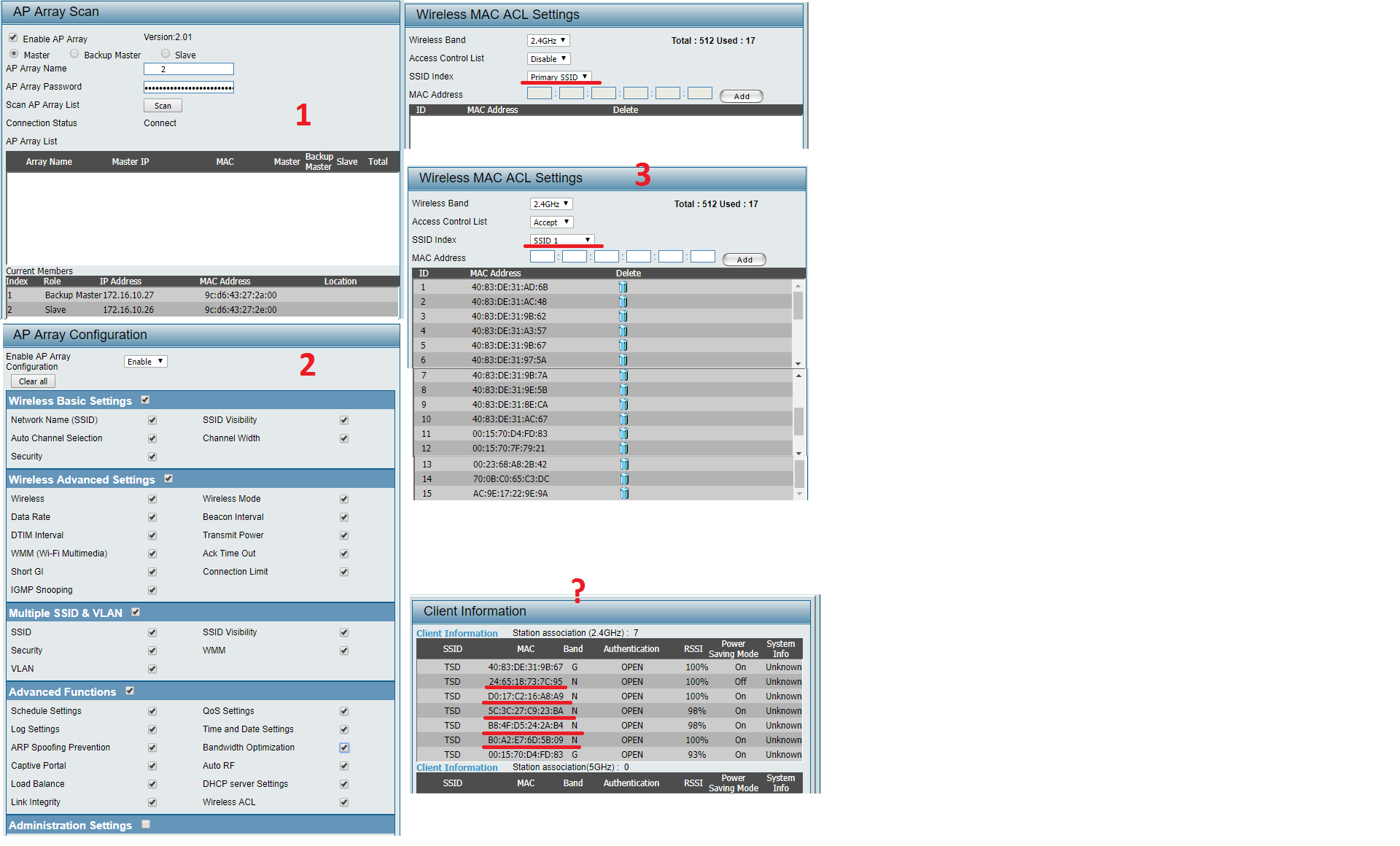 Почему-то несмотря на фильтрацию по MAC в Multi-SSID1, к ней всё-равно могут подключаться неразрешённые пользователи, причём на любой из 3-х точек.
