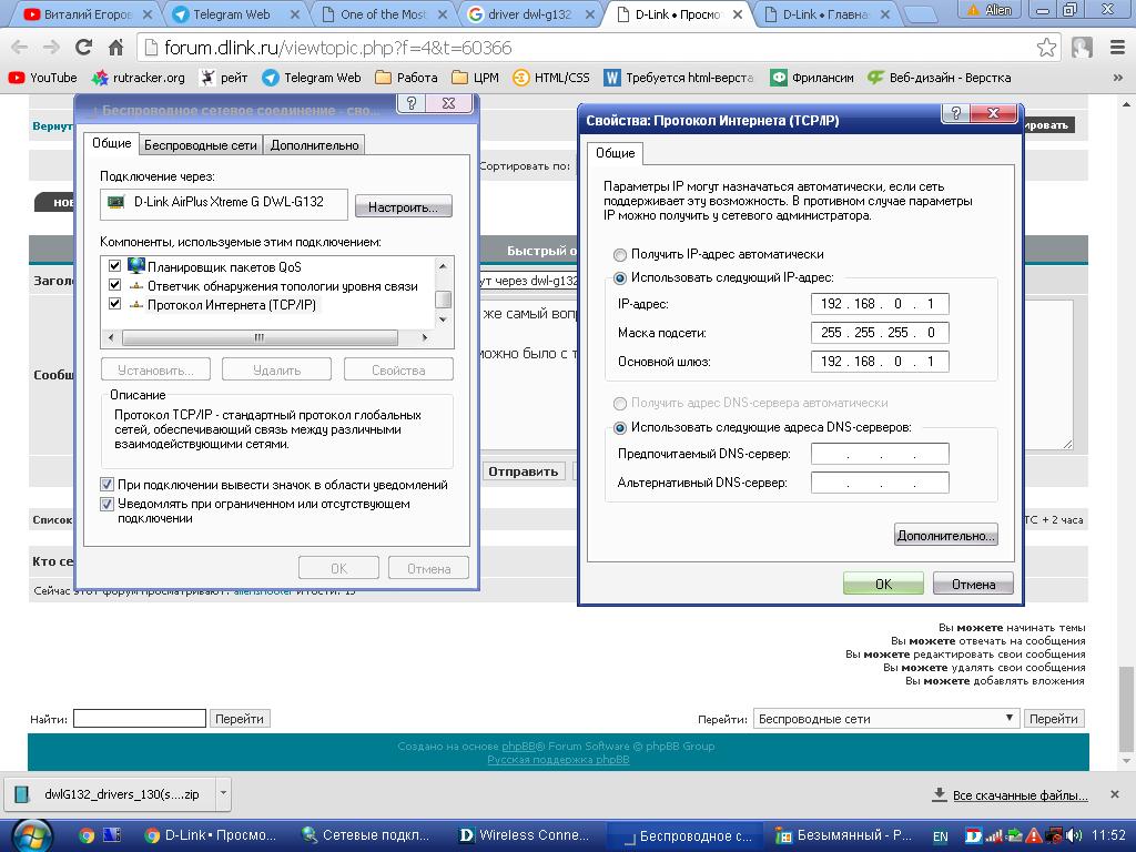 Скачал драйвер с вашего фтп, установил, вставил адаптер и появилась беспроводная сеть, но пишет - нет подключения. Хотелось бы узнать, в чем причина? И ip и маской правильные вроде. Помогите в этом вопросе пожалуйста.