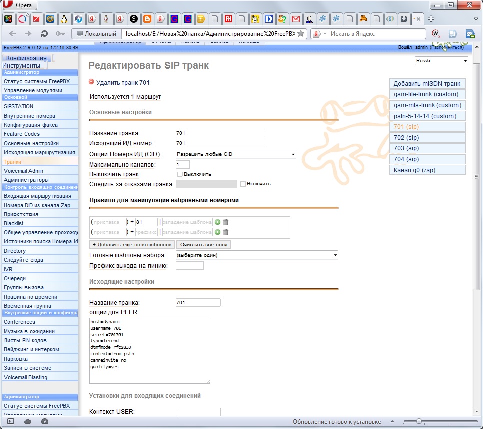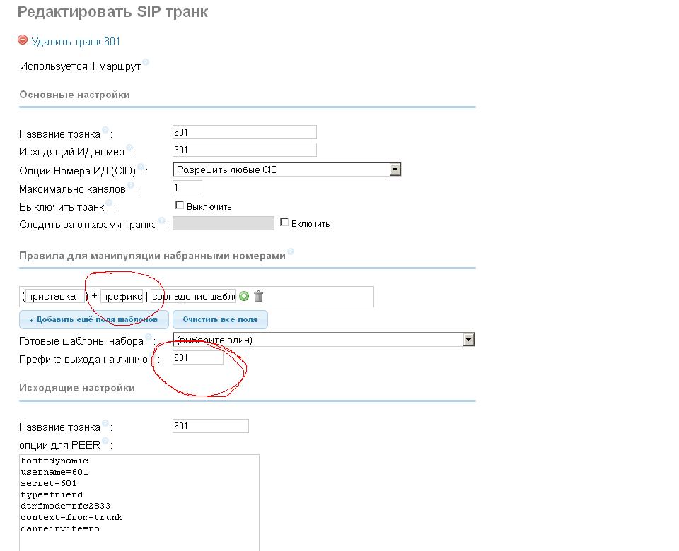 Ниже выложил скрины моих настроек в FreePBX.
