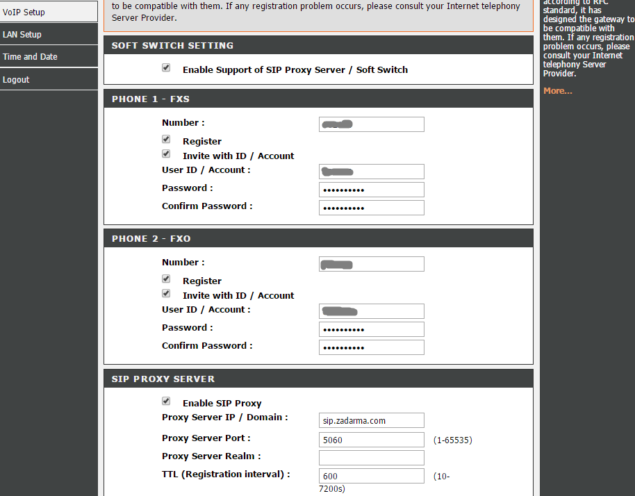 DVG-7111s является шлюзом между ГТС и номерами SIP.