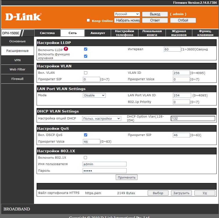 Телефон D-Link DPH-150SE /F5. FW version: 2.10.0.6676