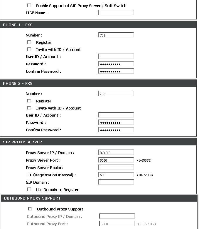 Необходимо собрать схему из нескольких FXS шлюзов, для пробы попробовал собрать два двух портовых. Не выходит. Делал по настройкам указанным на сайте. Мож подскажите где ошибся? В скринах настройки шлюза, второй такой же тока адрес у него 200 и порты 700 и 701. Сеть закрытая, шлюза и DNS нету. Фоне бук расписал. После набора номера идет занятость сразу. в статусе пишет в колонке прокси регистерид дисэйбл.