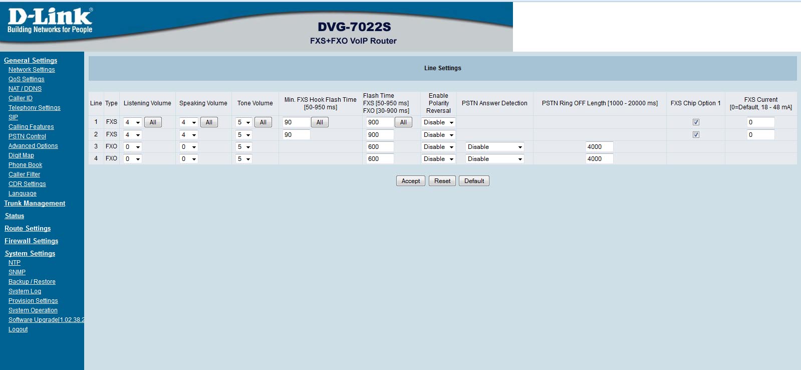 Следующая проблема с переводом звонка с FXS на другой внутренний номер. При нажатии на клавишу FLASH шлюз разрывает соединение. В Advanced Options - Line Settings - выставил Min. FXS Hook Flash Time = 90 мс и Flash Time 900 мс. Теперь не сбрасывает соединение, слышен щелчок в трубке и все.