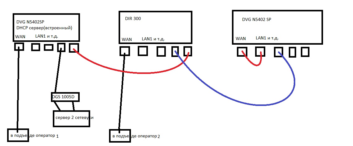 WAN порт SP к LAN 1 SP то железка SP должна выполнить авторизацию и выдачу IP WAN 2 порту подключённому в LAN 1 SP порт, и дать железке доступ в сеть интернет (через LAN 4 SP порт подключён к LAN 4 порту DIR 300 на котором есть интернет, а DHCP сервер включён в LAN 3 DIR 300 и поднят на DVG N5402 GF (клиенты, сервер, и фай фай клиенты IP получают с GF) или если на WAN 2 порту настроен PPTP тунель подключиться к серверу и прокинуться в интернет уже сервера PPTP....