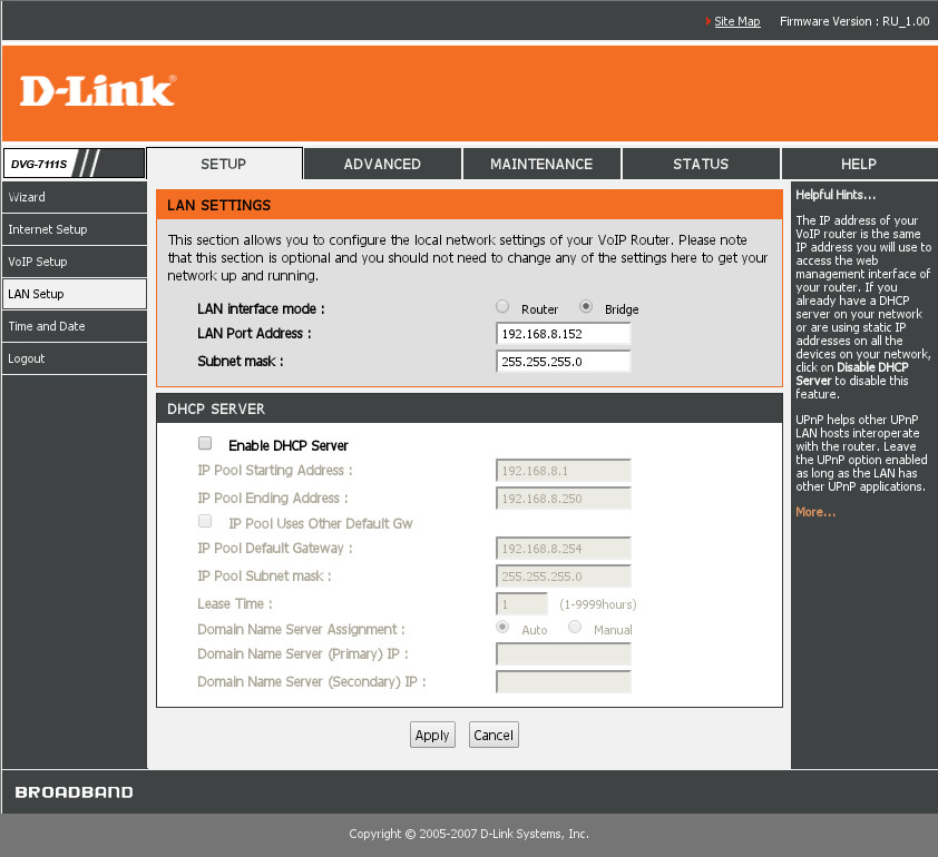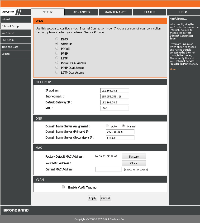 DVG-7111S в статусе sip пишет pending. На сип сервере нет соединения с DVG-7111S. tcpdump со стороны сип сервера не видит ни одного пакета от DVG-7111S в течении длительного времени.