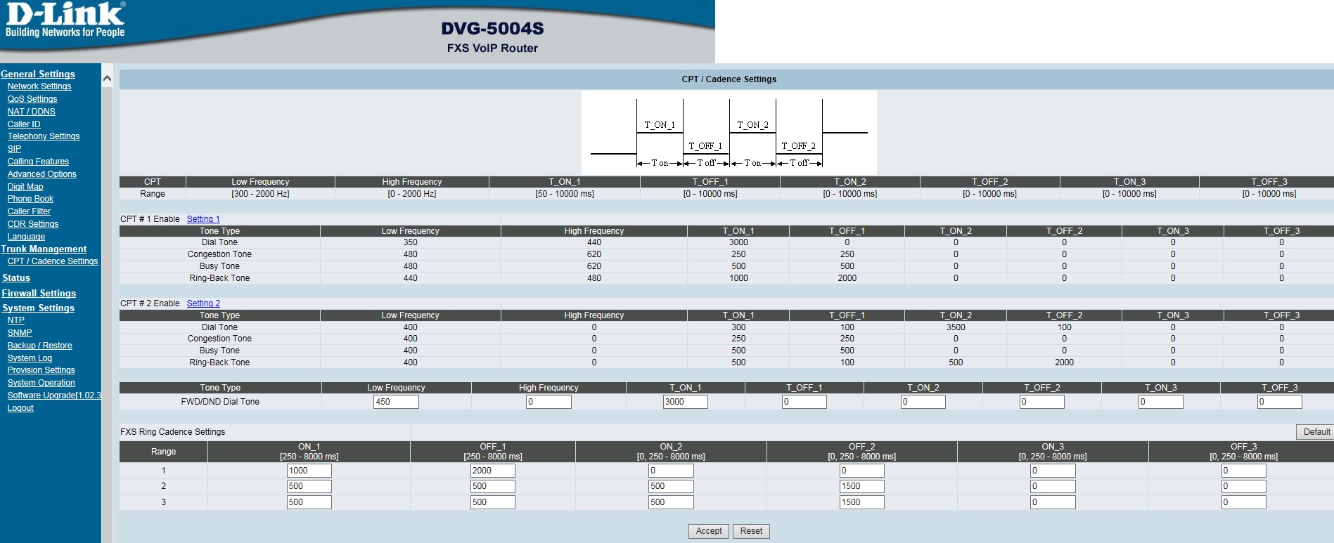 На все равно не понятно. Параметр FXS Ring Cadence Settings представляет собой таблицу из трех строк.