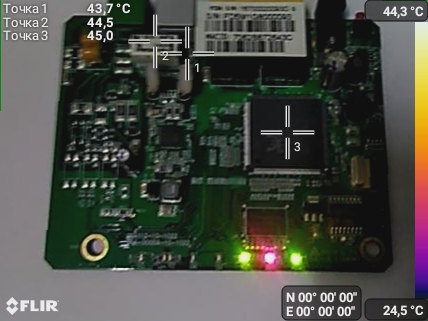 Вот фото шлюза на тепловизор. Видно, что греется процессор и реле.