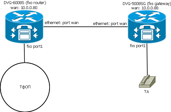 Подскажите, пожалуйста, как организовать «прозрачный проброс» (Hot-line) между удаленными абонентами на основе оборудования D-Link: DVG-5008SG и DVG-6008S без использования SIP сервера. В DVG-6008S приходит провод от АТС (медная пара), в DVG-5008SG будут вставляться аналоговые трубки.