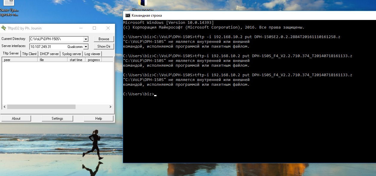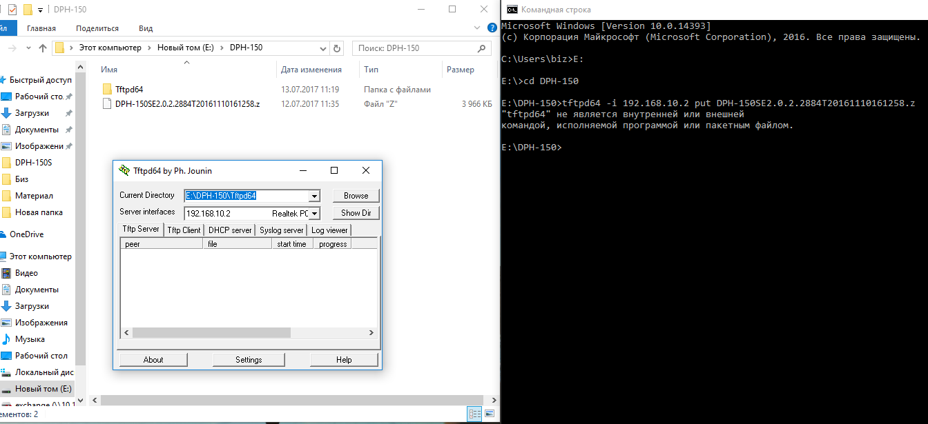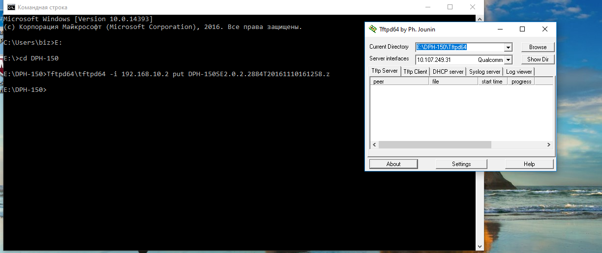 а уже потом ввести команду tftp -i 192.168.10.2 put DPH-150SE2.0.2.2884T20161110161258.z