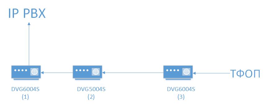 Провайдер предоставляет две аналоговые телефонные линии через свои шлюзы посредством WAN порта (на рисунке под номером 2 и 3). Все шлюзы ревизии B. У меня в серверной стоит провайдерский шлюз номер 2. Для того что подключить аналоговые линии к нашей АТС (Asterisk) поставили шлюз под номером 1 и соединили его со шлюзом 2 через медные порты fxs и fxo. Наш шлюз номер 1 имеет последнюю прошивку 1.02.38.97. Столкнулись с проблемой плохой слышимости нас со стороны ТФОП. Т.е. если звонить с Астера на ТФОП то мы слышим хорошо, а нас практически не слышно, тоже самое происходит и наоборот, если звонить с ТФОП через всю цепочку шлюзов, то мы слышим хорошо, а нас нет. Пробывал играть с параметрами Preferred Codec Type, FXO Impedance, Line Settings (Gain, Flash Time, Polarity Reversal) на шлюзе под номером 1, но кроме появления эха, нас лучше слышать не стали. Посмотреть настройки на шлюзах 2 и 3 провайдер не дает. Если подключить 2 аппарата к шлюзу номер 2 и позвонить на другую линию, слышимость хорошая, получается проблема в связке шлюза 1 и 2.