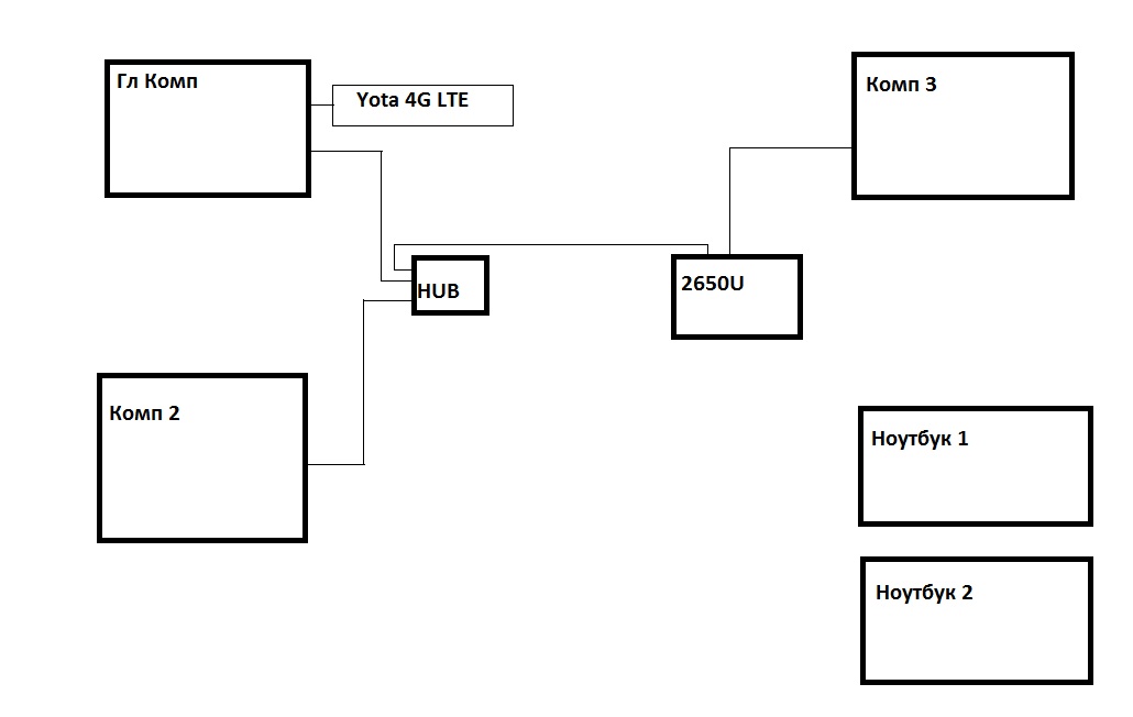смысл какой имеется главный компьютер на котором сетевая карта и usb модем yota 4G lte , они объеденены в мост для раздачи интернета сети.
