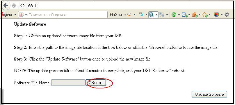 После того как устройство будет выведено в аварийный режим, нажмите кнопку «Обзор» и выберите файл прошивки (скачайте её отсюда