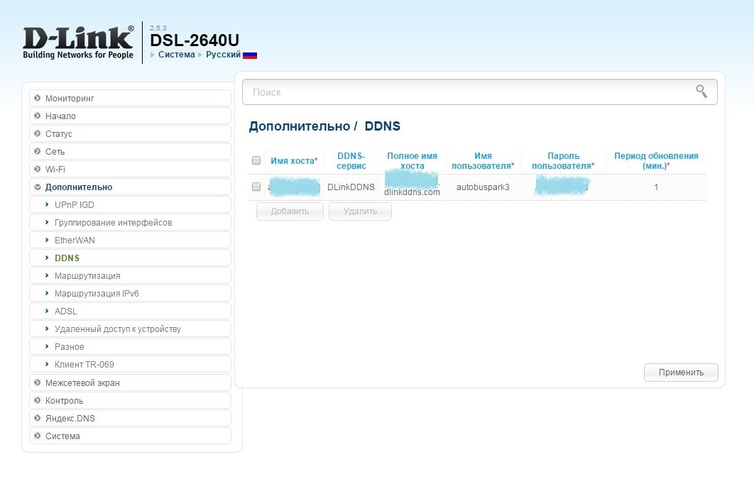Купил модем H/W: U1 с прошивкой 1.0.21 По привычке сразу скачал новую прошивку, залил, настроил подключение по РРРоЕ и... завис на настройке DDNS С этими полями вроде как всё понятно: Имя хоста* DDNS-сервис Имя пользователя* Пароль пользователя* Период обновления (мин.)*, а вот параметр Полное имя хоста завёл в ступор, т.к. никаких вариантов кроме как своего домена, зависящего от значения параметра DDNS-сервис, не предоставляется. Таким образом я не смог указать полное имя moi-ogorod.home-in-the.net как зарегистрировал на DYN. Попробовал сделать бэкап настроек, открыл файл, нашел адрес moi-ogorod.dyndns.com, заменил на нужный домен, упаковал и загрузил в модем - не помогло. Решил, что проблема в прошивке - пошёл поменял на новый с заводской версией прошивки 1.0.21. Настроил подключение к Интернету и DynDNS - вроде всё работает, но... Раз в сутки провайдер проводит переподключение сессии клиентов, модем получает новый IP-адрес, но на DynDNS почему-то регистрируется не новый WAN-адрес, а какой-то левый, причем постоянно начинающийся на 145.Х.Х.Х. В связи с чем приходилось смотреть новый WAN-адрес модема, заходить на DYN и править альяс на новый адрес - всё это напрягает, особенно в нерабочее время. Заодно надоело смотреть на сообщение при входе в Web-интерфейс настроек модема, что доступна новая версия прошивки 2.5.3 и... Я решился обновить. После окончания процедуры модем завёлся, поднял подключение и даже удаленка зарботала по DynDNS - казалось бы, работай и наслаждайся, но я люблю контролировать процесс и решил проверить, что там в разделе DDNS. Теперь я ещё в большем ступоре, т.к. имя хоста, имя пользователя, пароль пользователя и период обновления стоят мои, а вот DDNS-сервис почему-то значится DLinkDDNS и полное имя хоста moi-ogorod.dlinkddns.com. Каким образом работает обращение по моему имени хоста, в то время как на модеме стоят другие настройки и я даже не зарегистрирован на DLink DynDNS?! Что за фокусы?!