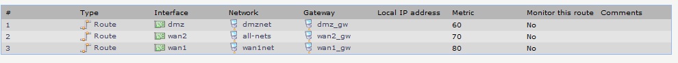 Route wan2 all-nets wan2_gw 70 No