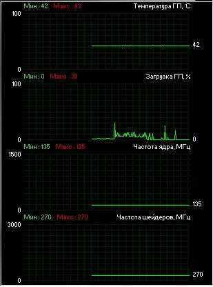 хочу с вами не согласиться, по поводу нагрузки на видеокарту... в в процессе сбора видео с камер, обработки его и записи на диск видеокарта совсем не участвует... а это и есть основная задача программы, которая требует больше всего ресурсов компьютера. видеокарта используется только в момент просмотра изображений на экране, и я вам скажу для этого нет необходимости в четырех двух процессорных видюхах... в рассматриваемом мной компе установлена Nvidia 8400 gs . вот её показания :