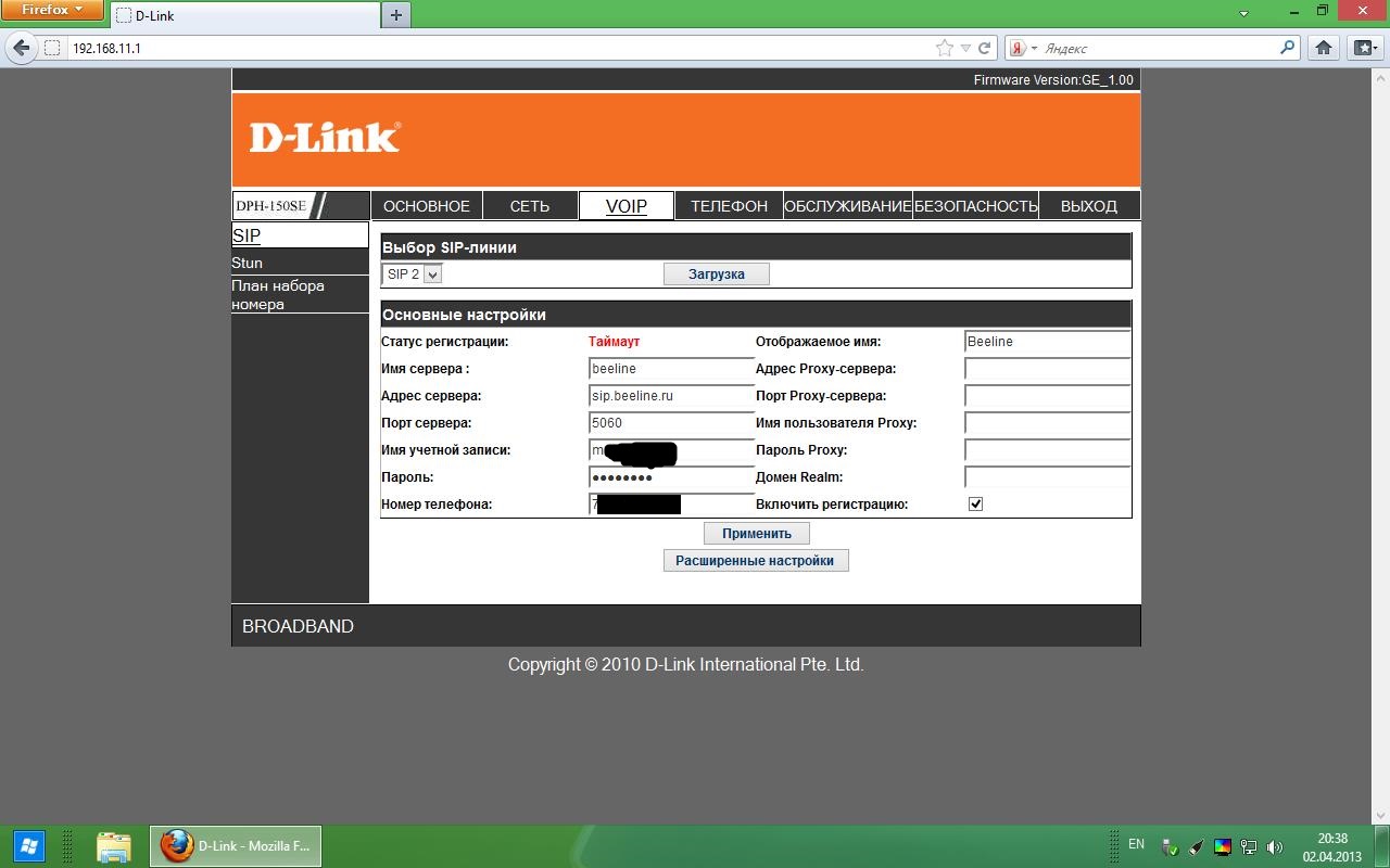 Второй адрес прокси сервера: msk.sip.beeline.ru