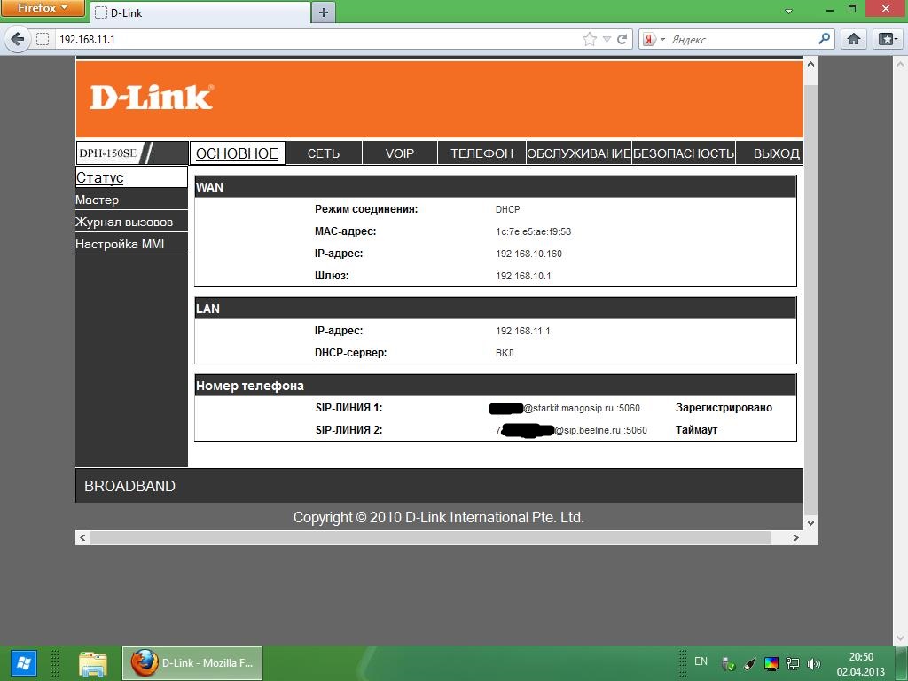 Телефонный адаптер DVG-5112S подключен к Беспроводному маршрутизатору DIR-615. Провайдер Beeline. Подключена услуга «Домашний цифровой телефон» от БиЛайн.